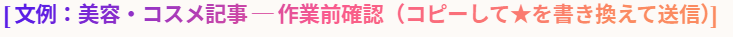 記入例:上記はNGで、「透明感のある肌に導く」「整える」などの表現を使うイメージでしょうか?